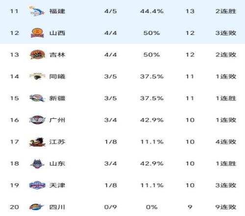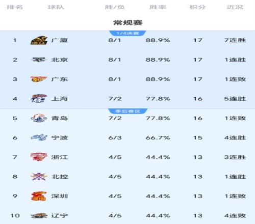 CBA再无全胜球队!广东31分惨败北京,最新积分榜:卫冕冠军登顶