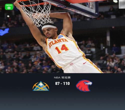 北京时间1月10日NBA 常规赛,丹佛掘金对阵亚特兰大老鹰。半场掘金50-58老鹰,最终掘金87-110老鹰。