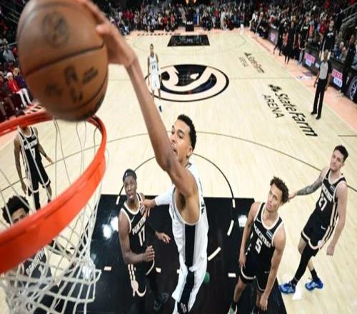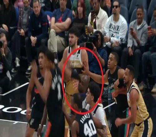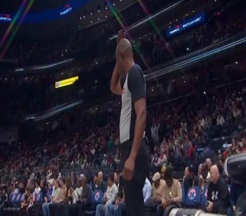 文班肘击裁判脑门 后者捂着头继续执裁