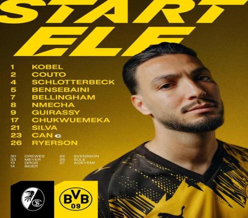 多特客战弗赖堡:吉拉西、小贝林厄姆首发,埃姆雷詹出战