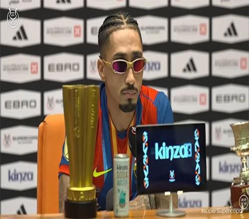 以2个进球帮助球队在决赛击败皇马赢得西超杯后,巴萨前锋拉菲尼亚出席了新闻发布会。