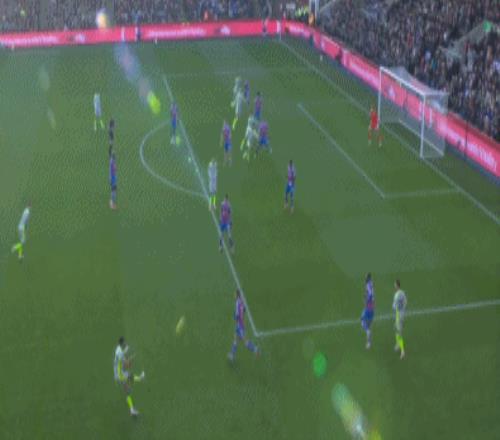 客场作战的曼城并未占据主动,水晶宫则不断创造破门机会。然而,比赛的第41分钟,努内斯右路横传,无人盯防的哈兰德头球冲顶破门,1比0!
